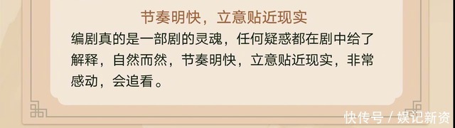 还有一些网友则是称这部剧的节奏明快,立意贴近显示。称这部剧中的一些迷惑点都给出了解释,剧情自然而然,让人感动。