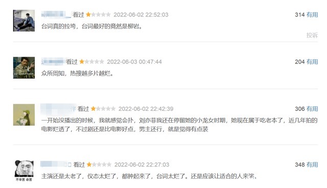 这一点两大主演都被吐槽了个遍,有网友可能会说不是吧,刘亦菲这样的神颜还有人吐槽?确实刘亦菲年轻时候的颜值非常地高,但是八零后的刘亦菲现在颜值也算是属于下降的时期了。