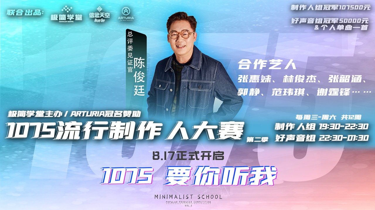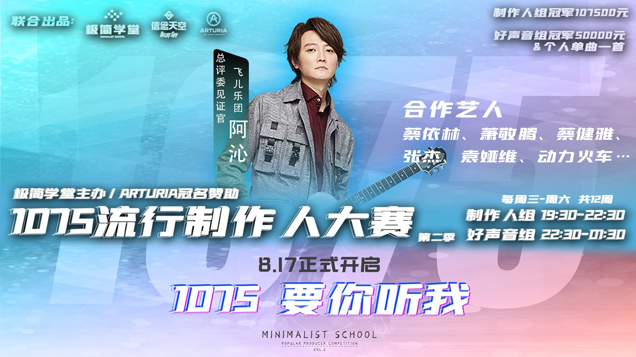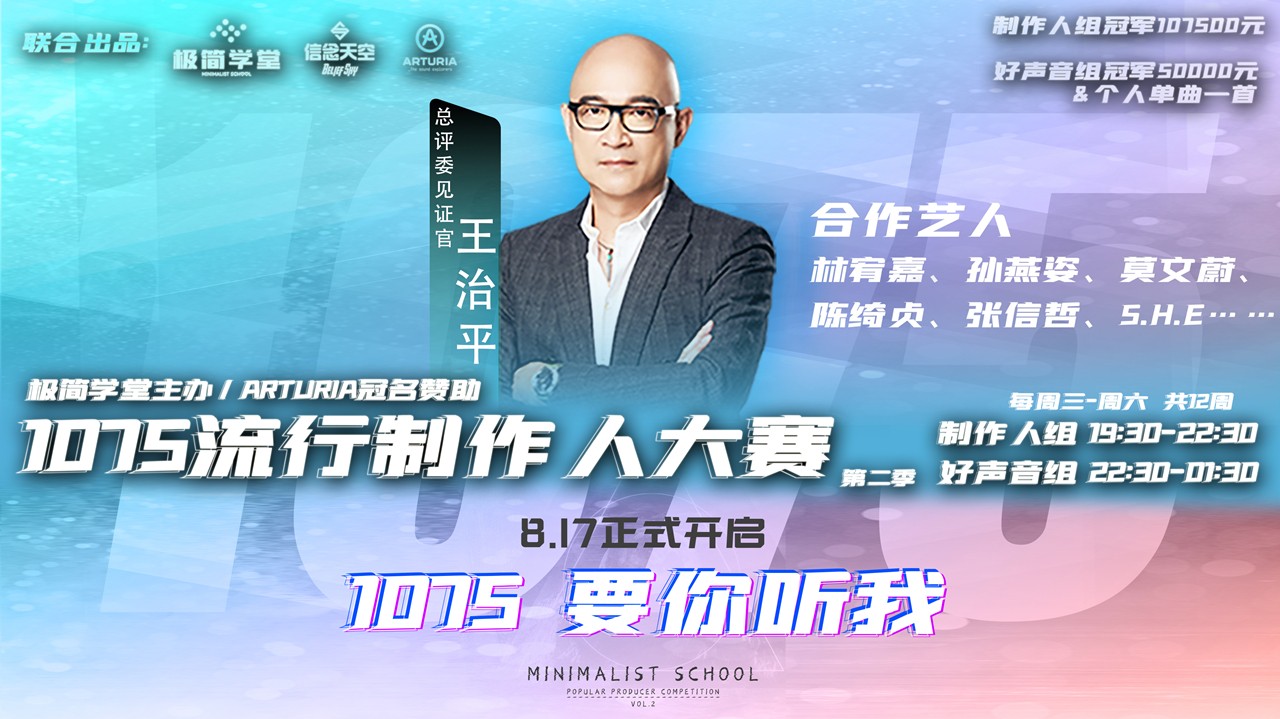 第二季跨大举办,将举行66场线上海选、半决赛与总决赛,本季分为制作人组与好声音组、跨国际的评委赛区组合。这一季奖金奖品全面升级,已邀请韩国制作人新沙洞老虎,曾为炫雅、Apink、IU、等知名歌手制作爆款单曲,将亲自点评学员作品,为学生保驾护航、精彩加倍!本届赛事还会持续邀请音乐届大咖,包含但不限于知名飞儿乐团阿沁、陈俊廷、王治平、娃娃等等参与周赛複赛的评委导师!值得一提赛事筹备期,国际知名乐器厂牌Arturia中国总代理,知悉极简学堂举办如此正能量的比赛与活动,加入全力支持贊助丰富奖品与奖励,一同共襄盛举助力本次活动。本季学员除了高额奖金,更有机会获得整套专业录音、制作、编曲设备。可以说是一大福利。