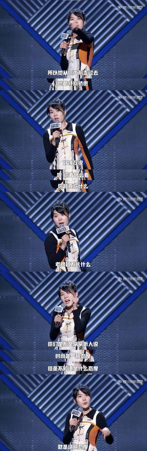 “希望广大女性演员们不要再嘲笑自己的长相了,既然咱们都说脱口秀了,咱得通过自己的幽默和智慧让所有人都明白,就长成我们这样,那就叫美女……”