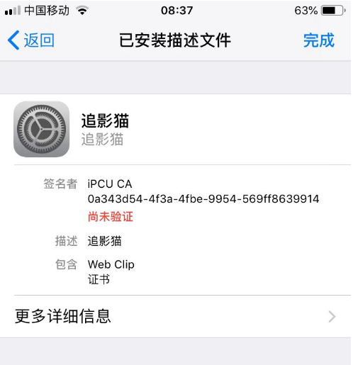 描述文件下载成功后,点击【关闭】