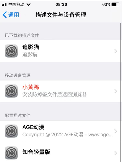 注意:如果上图位置找不到,可点击【设置】-【通用】-【设备与描述文件】(每个苹果手机这个地方的名称都可能不一样)